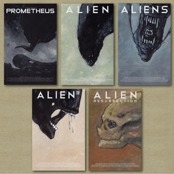 Aliens and Prometheusset of Five 11 x 17 posters by wellsillustration