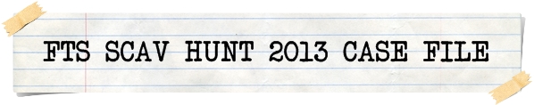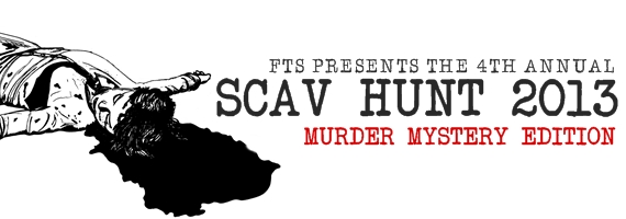 Each year we set a new theme for the Scavenger Hunt that shapes the overall list. FTS decided on a theme they personally love for 2013: Murder Mystery. The list and challenges will have a section specifically relating to our theme but there will also be an overarching mystery to solve during the hunt. We will provide you with all the clues and necessary materials needed to solve the case and points earned during the hunt can be traded for additional help.