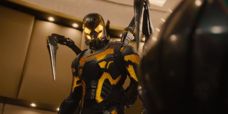 Here’s Darren Cross’ next generation Ant-Man suit, which he gives the moniker Yellow Jacket. Apparently, that’s a name for wasps that we don’t have in the UK, so that name sounds damn stupid to me, like someone’s doing a parody of the redcoat army. Here’s the villain, he’s called Puce Dungarees.