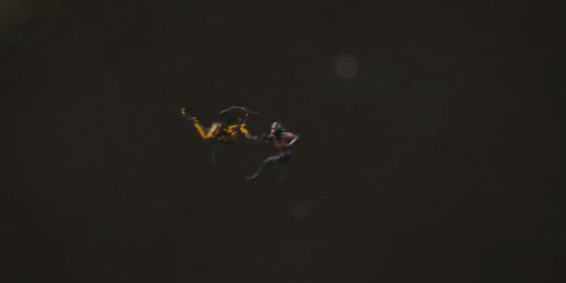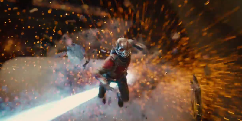 Just to give you an idea of scale, that blip in the middle is Ant-Man jumping, and the stuff around him is a fairly small gun. So he’s tiny, basically. Alas, we don’t see him just missing the dodge and riding a bullet through the air, because that’s probably being saved for Ant-Man 2: The Swarm.