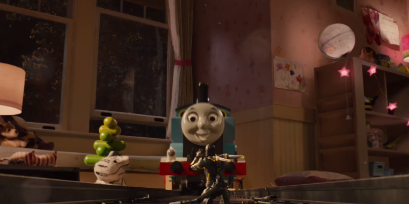 And this was the moment when I was fully on board. Yellow Jacket faces his mortal enemy – Thomas the Tank Engine!