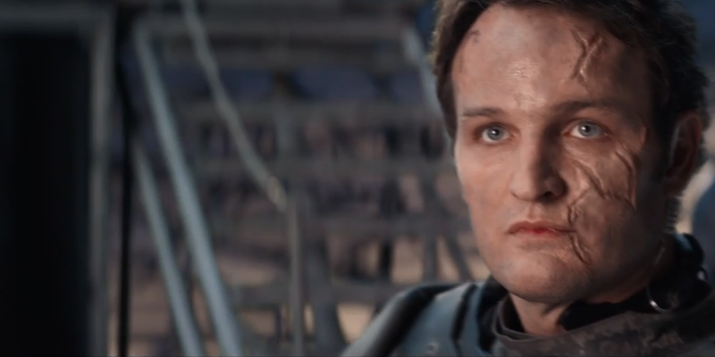 Welcome to the future! Jason Clarke is the grown-up John Connor (replacing… oh you get it by now), who hasn’t fared too well in a couple of battles judging by those scars. He has successfully become JOHN CONNOR, SAVIOUR OF MANKIND, and is seen here giving a speech to the remaining rebels.