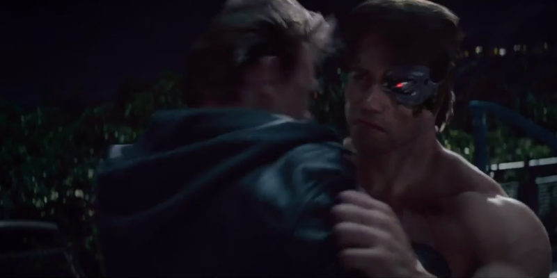 Don’t say it. Don’t say it. We know it’ll be in the film somewhere, but you don’t need to say “I’ll be back” in the trailer. Ah nuts, he said it.