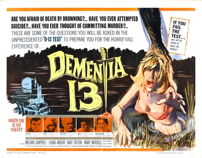 As far as film making goes, Francis Ford Coppola might as well be dead by now. This may sound harsh but it’s the truth – or did you even hear. anything. about his last film “Twixt“? Let alone the fact that he’s only directed three movies since the 1990s. However, there was a time when Coppola stood for some of the most instant classics of his generation. Followed by a time when there was at least the possibility of him putting out some quality movie material. Ironically though, Coppola’s career started almost the same way it is ending now – blandly. After a couple of low budget nudie shorts, his first feature film Dementia 13 was followed by a long stroke of critical and sometimes commercial success.